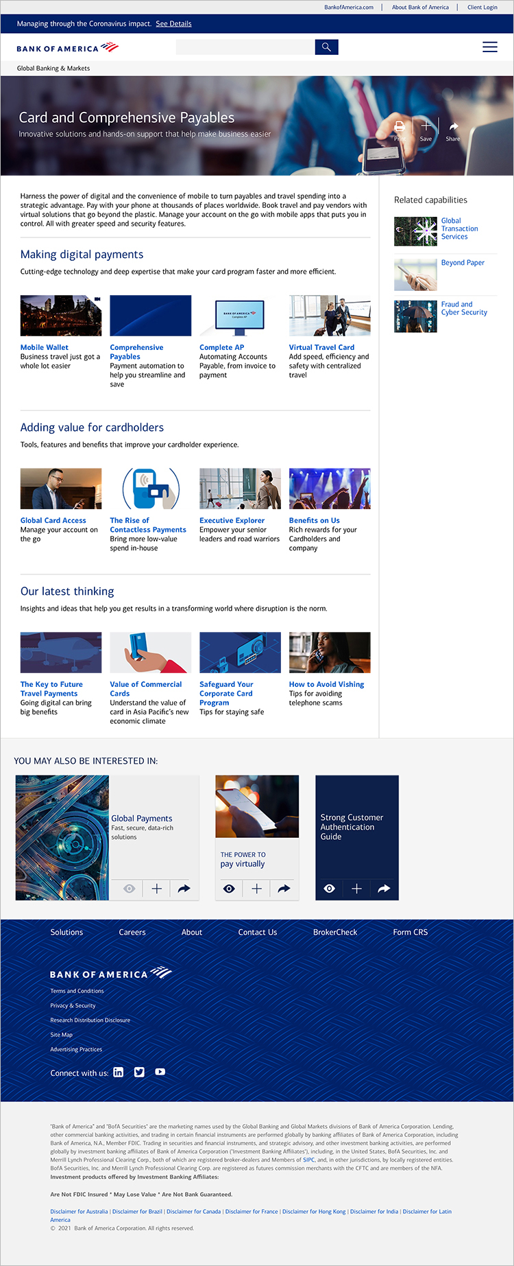 UX and UI design, photography and illustration for Bank of America's Global Business & Markets site.