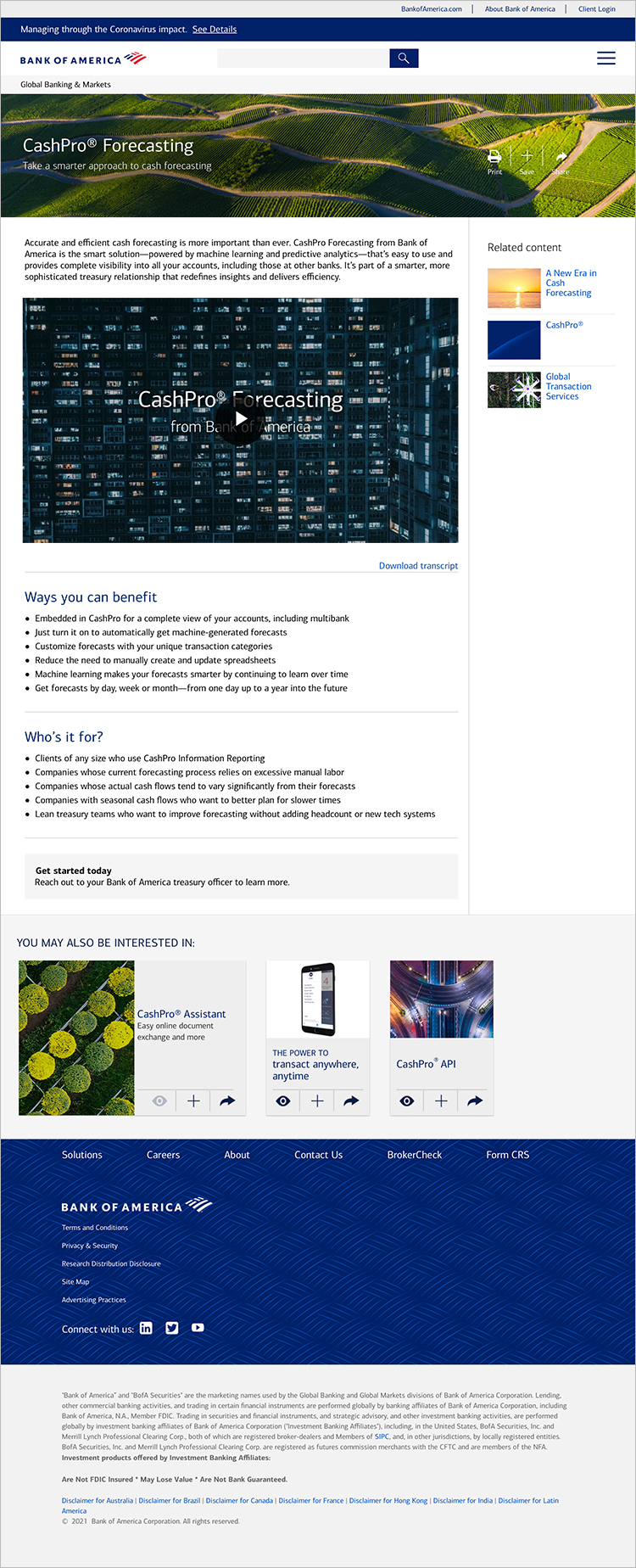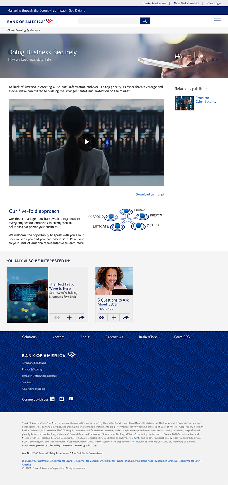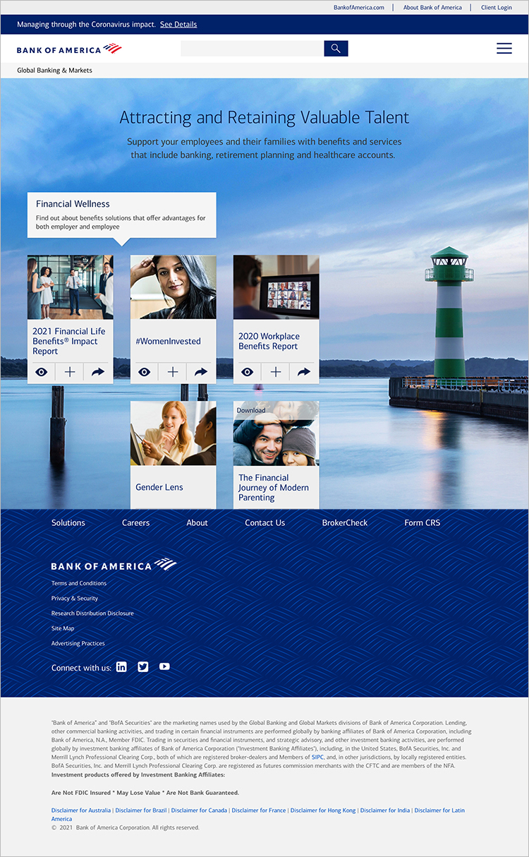 UX and UI design, photography and illustration for Bank of America's Global Business & Markets site.